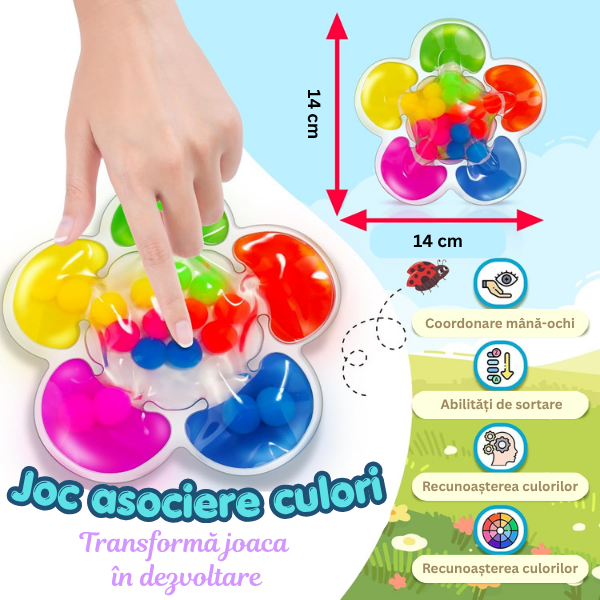 Redescoperă liniștea și bucuria învățării prin joc cu noul Joc Senzorial de Sortare a Culorilor – soluția Montessori pentru părinți ocupați și copii curioși.